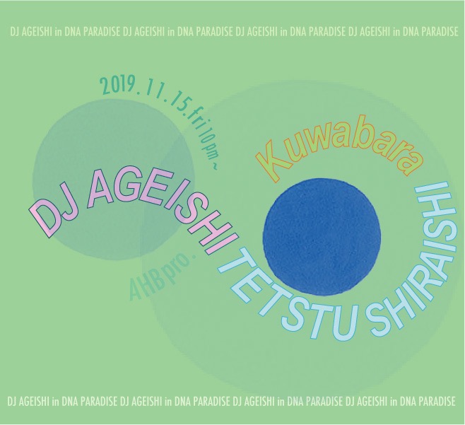 DJ AGEISHI in DNA PARADISE イベント詳細 日付: 11月-15-19 22:00 – 16-19 05:00 カテゴリ: deep house, house DJ AGEISHI in DNA PARADISE 2019.11.15 fri10pm DJs: DJ AGEISHI TETSU SHIRAISHI Kuwabara