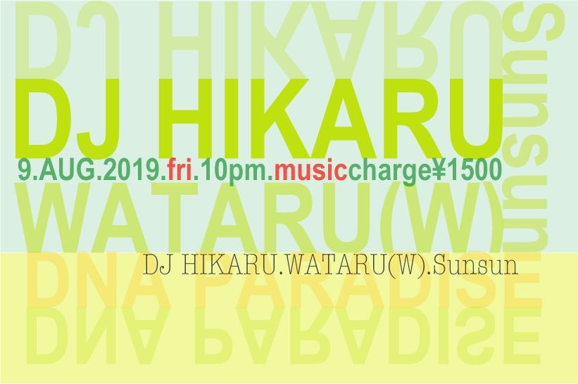 DJ HIKARU in DNA PARADISE イベント詳細 日付: 8月-09-19 22:00 – 10-19 05:00 カテゴリ: free genre DJ HIKARU in DNA PARADISE 2019.8.9fri22:00〜 DJ DJ HIKARU WATARU(W) Sunsun(Bomb birds ya!) music charge¥1500