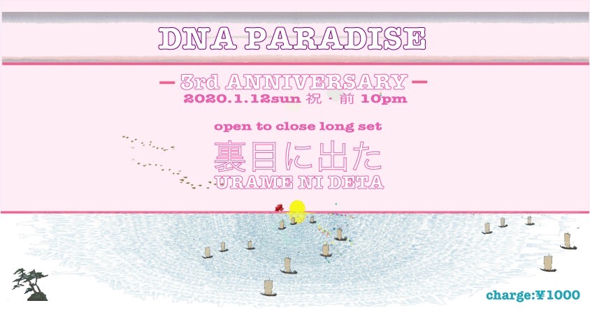 DNA Paradise 3rd anniv.-URAME open to close long set- イベント詳細 日付: 1月-12-20 22:00 – 13-20 05:00 カテゴリ: bass, crossover, Dub, experimental, hip hop, house, world music DNA Paradise 3rd anniv.-URAME open to close long set- 2020.1.12sun(祝前日)10pm〜 dj: 裏目に出た music charge¥1000