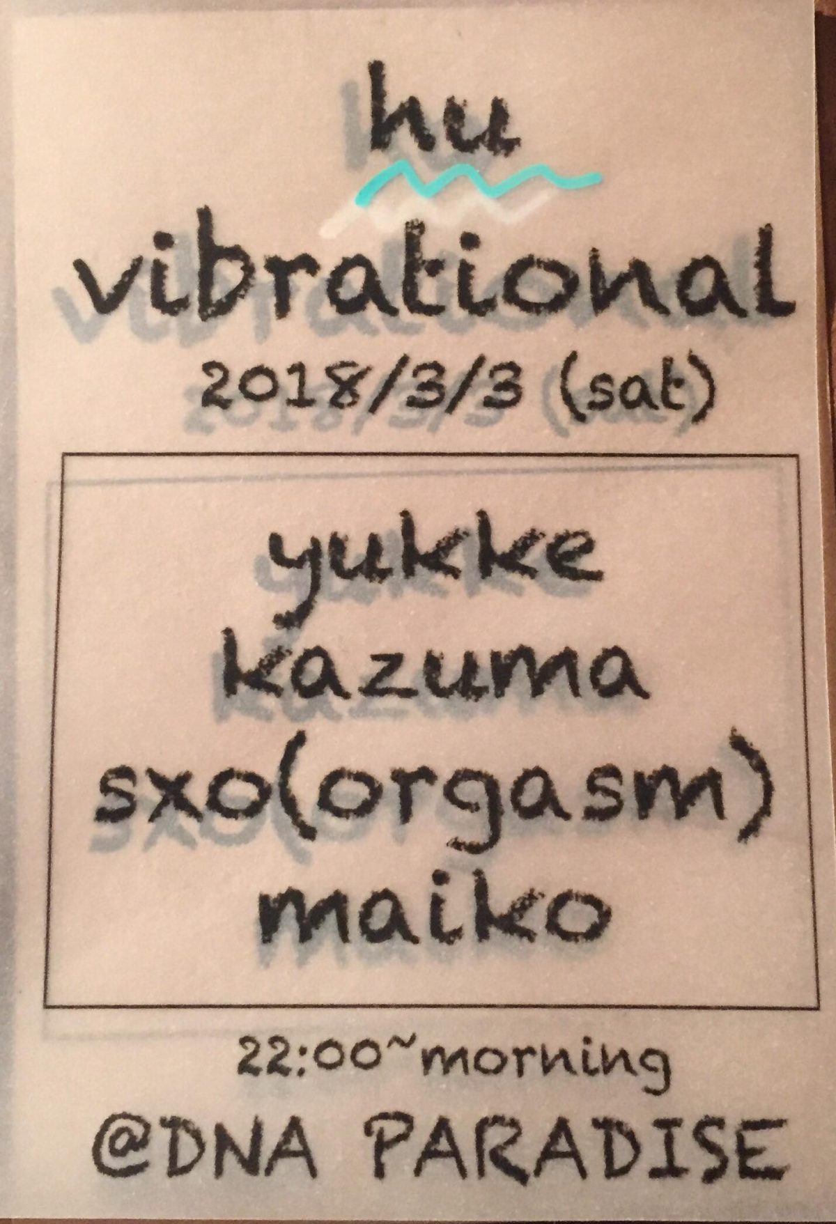 hu vibrational イベント詳細 日付: 3月-03-18 22:00 – 04-18 05:00 DJ: yukke Kazuma sxo(orgasm) maiko music charge¥1000