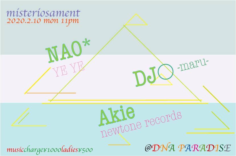 NAO *(YE YE) 滋賀県は伊吹山麓の米原出身。 20歳で沖縄へ移住。7年間レギュラーDJなど活動を経て、北は北海道札幌市から日本全国津々浦々おもしろパーティーを巡り旅をしていた。現在は地元滋賀県に着地。 BASS MUSICを好み、レゲエ、ブレイクビーツ、ドラムンベース、テクノ、ヒップホップなどをALLヴァイナルでフレッシュに混ぜ合わせていく。 DJ、アクセサリー職人、マッサージセラピストといったさまざまな形でパーティに参加し、名古屋を中心に活躍の場を広げている。 97年よりmiwaとのユニット、「YE YE」としても活動を続行中。 『Spice Slice』、YE YE presents『ONE ENERGY』、主催。 昨年には自主盤としてミックス CD『CORNY BUT FUNNY』をリリース。