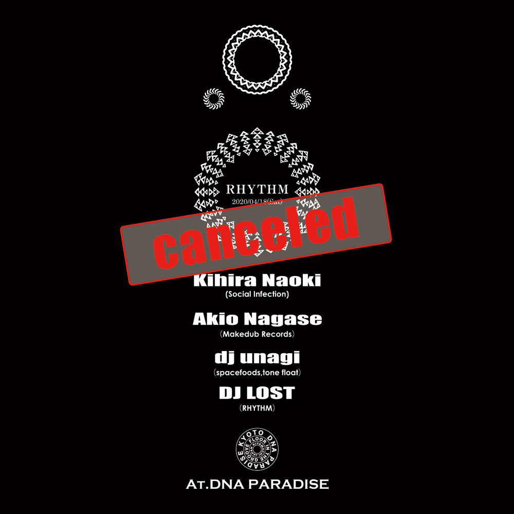 rhythm イベント詳細 日付: 4月-18-20 22:00 – 19-20 05:00 DJ’s Kihira Naoki(Social Infection) Akio Nagase(Makedub Records) dj unagi(spacefoods/tone float) DJ LOST(rhythm)